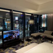 Номер площадью 52 квадратных метра достаточно просторный, с угловым панорамным окном и расположен недалеко от станции метро. Однако по ночам здесь слишком шумно. Железнодорожная станция находится прямо рядом с отелем, а в самом отеле, кажется, всего 13 этажей. Каждое утро, начиная примерно с 6:00, из-под потолка доносится грохот. Звукоизоляция плохая: слышно, как на улице разговаривают и смеются люди, и даже гудят машины. Номер подходит только для фотосессий, но не для сна.