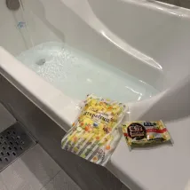 Мне понравилось, что душ и ванна раздельные, в отличие от некоторых других отелей, где я останавливался в этой и прошлых поездках. Большой плюс — наличие полки с туалетными принадлежностями для самостоятельного обслуживания — там даже есть охлаждающие гелевые пластыри для ног и увлажняющие маски!