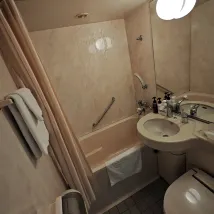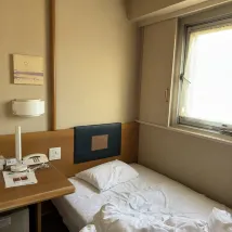 Станция Ryogoku находится напротив отеля, а неподалеку есть McDonald's. Номер открывался ключом, а не картой, и хотя он казался немного старым, он был чистым. Единственное, что меня огорчило, так это то, что номер был немного темным, а железнодорожные пути и шоссе были прямо рядом с ним, поэтому ночью было шумно, и я не мог нормально спать. И это был номер для некурящих, но в нем чувствовался слабый запах сигарет. В остальном он был неплохим. Персонал был любезным и приятным.