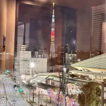 Открыв окно, я увидел прекрасную башню Skytree.