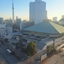 Расположение - отличное, прямо напротив сумо арены, но само здание стоит странно - вид из окон коридора на реку и стадион, а из она номера - в стену или на проходящую в 50 метрах линию железной дороги, идущую примерно на уровня пятого этажа. Сам отель очень старый, номера убитые и не очень чистые - отвалившееся изголовье кровати, вековая пыль по углам, грязь в бумагодержателе в туалете и прочие нюансы. Постель чистая, но одеяла старые и сбившиеся. Переночевать пойдёт, но за цену 20 тысяч иен за ночь (пятница-суббота) ожидаешь что-то совсем другое.