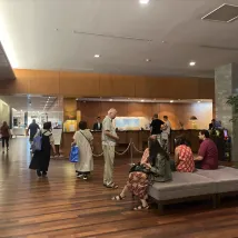 Остановка шаттла в аэропорт находится прямо у входа в отель и является первой. Однако, так как автобус объезжает несколько мест, чтобы забрать других пассажиров, это отнимает около 30 минут времени. Вместо этого можно воспользоваться JR или дойти до другой автобусной остановки, что тоже недалеко — до аэропорта можно добраться примерно за 1,5 часа.