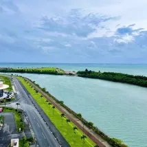 Лично я считаю, что этот отель – обязательный к посещению на Окинаве. Он расположен прямо напротив пляжа, идеально подходящего для фотографирования самолётов, а до конца пляжа можно дойти за 30 минут. В минуте ходьбы находятся зал для игры в патинко и круглосуточный магазин, что для меня просто необходимо. Неподалёку также есть множество торговых центров для взрослых и аутлетов, которые обязательно стоит посетить. Хотя расположение не самое лучшее, транспортная доступность довольно удобная.