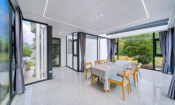 拉開窗簾就是山,慢生活不二之選,往前開就是水庫,還有小溪,適合親子玩水!水庫人也特別少,除了吃飯要開3公里去總店不方便!環境比總店清凈,門口山間田野,愜意!小帥哥也很熱情!有機會還會再來