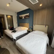 Номер довольно большой, туалет и душ разделены на мокрую и сухую зоны, семейная комната просторная, обслуживание очень хорошее, он расположен очень близко к входу в живописный район Сичжа, нет проблем с прогулками с пожилыми людьми, на улице внизу много ресторанов, а супермаркет Lawson находится в удобном месте.