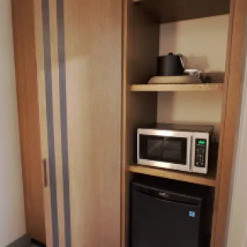 accommodated well for driving. Plenty parking lots. The staff was so helpful and very willing to provide assistance. Cookie is good. No Safe for property in room but the microwave in room really good for me having night snacks habits. btw , Tim Hortons just right next to the inn, you can enjoy your coffee anytime you want to.