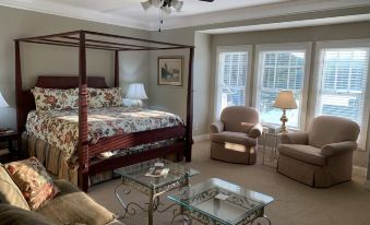 This luxurious three bedroom "ONE LEVEL" 2.5 bath Condo is an end unit that you can enjoy views of the lake to the beautiful landscape. Sleeps 8. The Master King size bed suite has a large sitting area with two club chairs in a bay window and a couch that makes into a queen size bed.