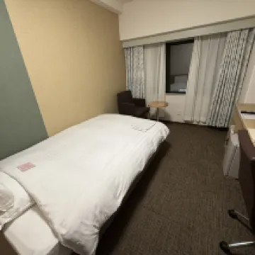 Отель расположен рядом с эскалатором слева после выхода со станции. Номер был очень чистым, а на втором этаже были туалетные принадлежности самообслуживания и комиксы. Рядом со станцией расположено множество магазинов, торгующих местными деликатесами. Остановки такси, автобусов и пригородных поездов находятся прямо напротив вокзала. Завтрак включал японскую жареную рыбу и суп мисо, а также западные сосиски и хлеб. Купоны на скидку на пригородные поезда можно получить на стойке регистрации.