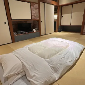 Остались в восторге от данного места. Всё очень аутентично, красиво, персонал супер приветливый и вежливый, знает английский. Обязательно берите номер с ужином кайсеки - это что-то потрясающее, вкусно и супер аутентично. Так же выдают юкату, можно выйти погулять по главным улицам и сходить по абонементу (выдает отель) в 7 публичных онсенов. Вас отвезут на собственном трансфере, так как отель находится немного дальше основной улицы. В самом отеле тоже есть один онсен, рекомендую тоже туда сходить. Номер бесподобный, есть все удобства, оставлю фото)) За одну ночь пребывания скинули усталость, накопившуюся за 5 лет, рекомендую к проживанию!