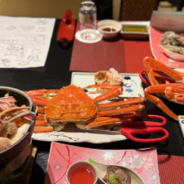 Это мой второй приезд в Киносаки, и я остановился у них дома. Краб Мацуба вкусный, свежий и сладкий. Впереди стоит кантонская женщина, которая говорит по-китайски и очень добра. Когда вы останавливаетесь в их доме, вы можете бесплатно насладиться 6 горячими источниками на улице, что является особенным опытом.