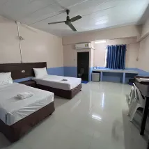 Огромная комната и ванная комната. Одно из самых чистых мест, где я когда-либо останавливался в Таиланде. Хорошее расположение, недалеко от железнодорожного вокзала и ночного рынка на углу. Много места для хранения вещей. Замечательный персонал, очень добрый и услужливый. Диспенсер для горячей/холодной воды и микроволновая печь на стойке регистрации. Тихо ночью.