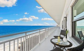 Balcony: Shared balcony with 180-degree ocean views. Outdoor chairs provided. Since this is a corner unit, there is much more room to relax and soak up the views.