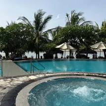Очень хороший отель с замечательным рестораном. Завтраки и ужины были самые лучшие на Шри-Ланке. Подача блюд восхитительна. Сервис на высоте и персонал очень дружелюбный. 10 из 10. Советуем всем кто приезжает в Трикомали. Бассейн и территория очень чистая и ухоженная.