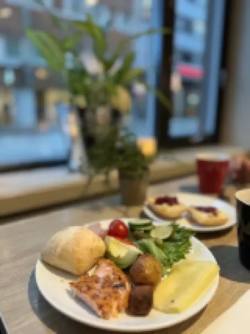 We were amazed by the breakfast of the hotel, which is the best I’ve tried in Europe. And the gym is big and many gym facilities you can use, but it’s few streets away from the hotel. Beside the room is clean and spacious. We love the hotel, and sure will stay again when we visit Tromso again!