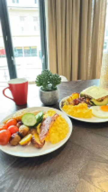 Great hotel for our short stay. Room was large and comfortable. Breakfast was very good, with lots of options. Bacon, egg (fried,scrambled or boiled) beans, toast and brown sauce was my choice. But there was a good choice of pastries and breads, yogurts and cream cheeses, meats etc etc.