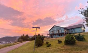 Cheerful Cabin facing the Canaan Valley ski slopes with beautiful sunset. Beautiful community with shopping, dining, and all year activities all around. Upstairs has 3 en suite bedrooms, walkout basement is a huge studio with a twin/day bed and full bath