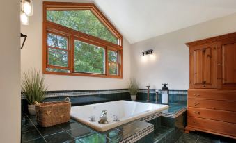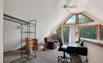Enjoy the leisure of the naturally-lit sunroom, cozy up in the two living areas with large Smart TVs and fireplaces, and even catch up on work in a dedicated work space! Our spacious kitchen and dining area are perfect for the foodies in your group (and check out the high ceilings, flooding in natural light), and the beautifully decorated bedrooms ensure comfy nights for all. But the real highlight? The Cowboy Cabin! Play games, relish arcade classics, and make memories at the bar. There is something for everyone in your group, making Care Bear Cabin your DREAM retreat destination!