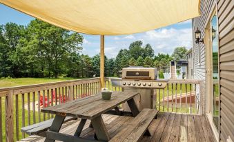 Enjoy BBQ on a deck.