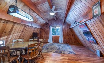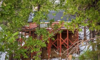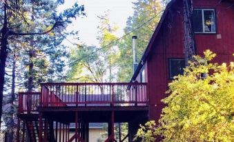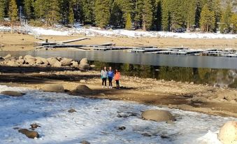 Sugar Bear becomes magical in the winter-time. Up-close snow covered Sugar Pines with an extra large deck perfect for building frosty or other snowy creatures! We keep 5 sleds to enjoy local sledding. Pinecrest lake is 5 minutes away and great for kiddos to enjoy safe and free sledding experience. Grab a hot cup of cocoa at Pinecrest Market Hut or enjoy a winter BBQ! Leland snow park is just down the highway. It is a lodge style snow tubing spot for adults and kiddos. Hang out at the outdoor viewing deck while sipping a glass of wine or beer with lunch. The staff helps the kiddo toddlers carry the tubes and they assist them getting in and at the top of their own special hill. A warm fireplace greets you and you can enjoy food and treats while viewing the tubers.