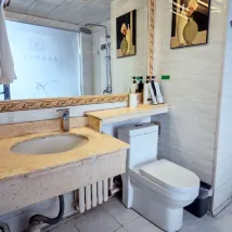 Номер был нормальный, но толстая дама на стойке регистрации и охранник вели себя отвратительно. Я не знаю, как на полотенце попала грязь, а они настаивали, что ее невозможно отмыть, и не давали нам залог. Мы хотели зайти в номер, но нам не дали карту, поэтому нас не пустили. В конце концов, мы просто промыли ее водой, и она была чистой. У дамы было суровое лицо.
