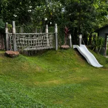 Подходит для путешественников, желающих остановиться с семьей, имеет большую территорию с травой.