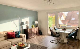 Die geschmackvoll eingerichtete Wohnung (liegt in einem Haus mit mehreren Wohneinheiten) ist sehr gut ausgestattet und gepflegt. Die Bilder in der Anzeige geben das gut wieder. Bus und Bahn sind in wenigen Minuten zu erreichen. Positiv fanden wir das mehrere Restaurants fußläufig erreichbar sind.