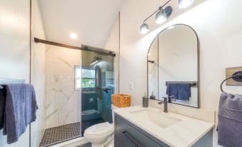 Discover your perfect retreat in this brand-new, two-bedroom home. It offers a luxurious master suite with a king-sized bed, an en-suite bathroom, and an adjoining enclosed porch for private relaxation. The second bedroom features a comfortable queen-sized bed and easy access to another full bathroom located in the hallway. The living room seamlessly flows into the kitchen, creating an open-concept space that is both inviting and functional. A 10-foot countertop accommodates seating for five, while the dining table can comfortably host six guests, allowing you to dine with a stunning view of the Esopus Creek. Step outside onto the expansive 20x20 open deck, accessible directly from the living room, to enjoy the outdoors and the serene creek-side setting. This home combines modern amenities with the tranquility of nature, providing the ideal backdrop for relaxation and entertainment.About pets:Pets allowed: limit 2 total.100$ per pet per stay will apply.About checkOut:Check out before 11:00 AM.About children:Children allowed: ages 0-17.About checkIn:Check in after 4:00 PM.About smoking:Smoking is not permitted.About minBookingAge:Minimum age to rent: 21.About events:No events allowed.