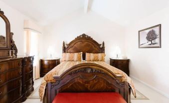 The house is beautifully furnished with a California King bed in master bedroom and hot tub. Two Queen Beds in rooms two and three (downstairs). Two twin beds in fourth bedroom. We also have 1 Queen size sofa bed, 1 folding twin size bed, and 1 folding twin mattress. 55" TV in the family room with 300+ channels. High-speed wireless internet throughout the house. Piano in living room. Fully equipped kitchen. Big formal dining table with six chairs in living room and round dining table in the kitchen/family room. Washer/Dryer is available on way to garage.
