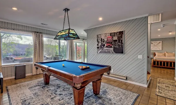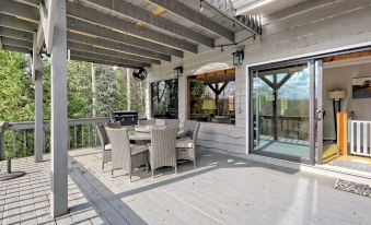 This spacious tri-level home comfortably sleeps 10 across 4 bedrooms, with 3 full bathrooms and 2 half bathrooms. Inside, you'll find a fully stocked kitchen, cozy wood-paneled living room with a gas fireplace, and smart TVs throughout. The home is perfect for every season, featuring multiple decks with lake and mountain views, an outdoor dining area with a charcoal BBQ, and a large screened-in porch—affectionately known as the "Tree House."