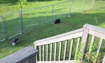 I have a nice fenced in dog yard for your pet to enjoy during your visit. There is a pet station box on fence with bags. Please be kind and clean up after your pet.