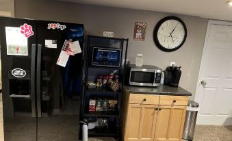 *The kitchenette is provided with a full-size refrigerator, microwave, coffee pot, toaster, blender, kitchen utensils, mugs, paper plates and bowls. There is also a variety of teas, coffee, snacks, breakfast items.