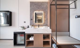 前台和保潔的服務態度都很好,新開業的酒店各項設施都很新很乾凈,設計也會更人性化,發現還準備有防爆手電。因為前一晚的房間住滿了換了高級大床房,空間更大,多了個沙發,如果兩個人入住的話更建議選擇這個。