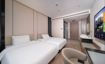 前台和保潔的服務態度都很好,新開業的酒店各項設施都很新很乾凈,設計也會更人性化一些,有配護髮素這一點特別點贊,枯發星人真的非常需要。早餐挺好吃的,粉面類還可以自己選配不同的湯,品類也不算少,有含早套餐的建議選含早的。美中不足的是酒店太新了,還有一點裝修的味道,走廊裏比較明顯,房間裏好一些,我晚上開了一點窗户睡的,還可以接受。總的來説性價比很高了,可以選擇。