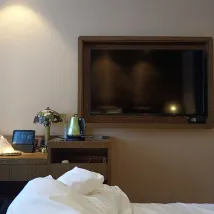 4. **Чрезвычайно комфортное пребывание:** Удобства в номере были тщательно продуманы. Матрас с эффектом памяти нулевого давления и высококачественное постельное белье создавали желание оставаться на месте, а отличная звукоизоляция обеспечивала тишину даже рядом с главной дорогой ночью. Умные устройства невероятно удобны в использовании; Голосовое управление Xiaodu позволяет управлять освещением и кондиционером, избавляя от необходимости вставать с места. Раздельные зоны для душа и душа в ванной комнате, а также умный туалет, делают проживание в каждой детали ещё комфортнее, делая его ещё комфортнее, чем дома.