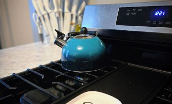 • Fully Stocked Kitchen: Modern kitchen equipped with new appliances (refrigerator, stove, microwave, coffee maker) and all essential cookware and utensils for preparing meals.