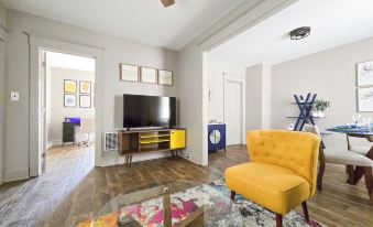 • Living Space: Relax in the inviting living room with a flat-screen TV, streaming services, and high-speed Wi-Fi for entertainment and connectivity.
