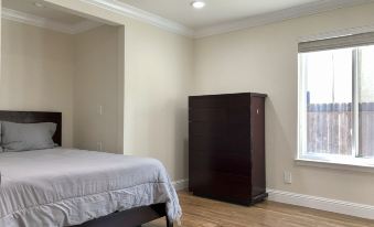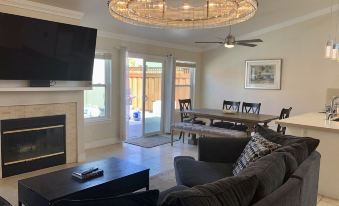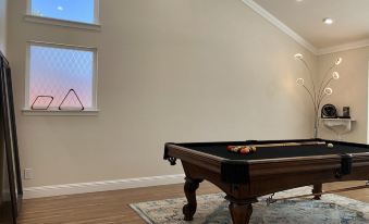 Bring the whole family to this great place with lots of room for fun. Brand new redwood gate all around property for ultimate privacy. Flat screen 65’’ OLED tv above fireplace. Heated pool, new hammock and outdoor wicker chairs, gas bbq, kitchen fully stocked, huge master bedroom with Cal King canopy bed and new mattress w/ memory foam topper. Jet shower in master, new restoration hardware chandelier and pendant lights, full gym in garage! No parties please, Max 6 people late check out fees 2x