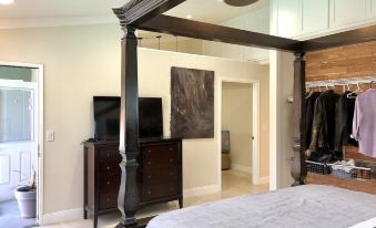 Bring swim wear and an open mind to be comfortable and have a great time! There are 3 beds in three different bedrooms total. Cal King in the master and two queen beds with available to use dressers in two other guest rooms. An office and a large great room are also all available for useAbout pets:Pets allowed: dogs (limit 2 total).About checkOut:Check out before 11:00 AM.About children:Children allowed: ages 0-17.About checkIn:Check in after 4:00 PM.About smoking:Smoking is not permitted.About minBookingAge:Minimum age to rent: 24.About events:No events allowed.