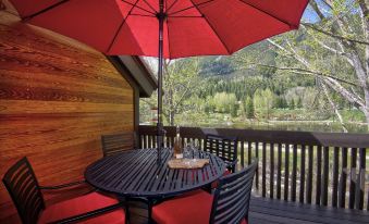 Three story, private townhome, with incredible front row views of the river, lake and the mountains. Walk out onto multiple decks and enjoy the glory of the mountains and listen to the roaring river just steps from the bottom floor of the townhome. You have a private entrance and there is no townhome in the Vail Racquet Club with this kind of view!