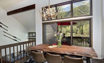 The townhome just underwent a renovation, so everything is fresh and new for your enjoyment. The living room boasts two story ceilings and a great wood fireplace. The dining room opens up to a patio for indoor outdoor dining and living areas. There are two masters with king beds (one with a private balcony and one with two story ceilings and access to the outside) as well as a perfect bedroom for kids or visitors with custom built-in bunk beds. All bedrooms include unobstructed views of the lake and the mountains!