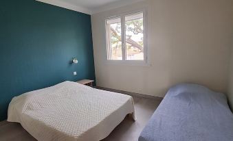 This 50m2 apartment includes a large living room opening onto a balcony, an equipped kitchen, 2 bedrooms with a double bed and a single bed each, a bathroom, an independent WC.