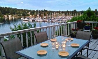 The massive deck is the best of the house. Watch the boats navigate to and from the Quartermaster Yacht Club, as well as the marina, all day long. Surrounded by towering 200' trees, eagles and cormorants are amazing to watch. Very private, you cannot see neighbors and have your own private beach. A gas grill is provided for your use. Dock for your boat.