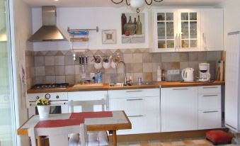Great place for two, possibly 3. Kitchen is well provisioned to be able to cook pretty much anything. Everything is clean and the apartment is comfortable. Only slight niggle is that there is a drainage pipe from the (much bigger) apartment above which is visible from the bedroom and (more importantly) which gurgles loudly when whoever is using the (bath?) room above pulls the plug out. At 11pm when you are just getting to sleep, it can be annoying. Other than that, perfect!