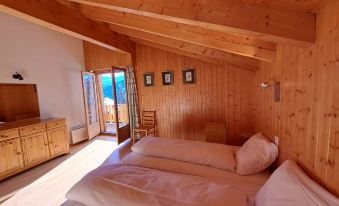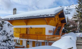Apartment block "Baudrier A", 2 storeys, surrounded by trees. On the outskirts, 900 m from the centre of Verbier, in a quiet, sunny position, in a cul-de-sac. Linen change (suppl. charge extra). Room cleaning on request (extra). Motor access to 20 m from the house. (10 steps). Shop 900 m, grocery 700 m, supermarket 600 m, restaurant 900 m, bar, bakery 900 m, café, bus stop "/Skibus" 300 m, indoor swimming pool 600 m. Golf course (18 hole) 2 km, tennis 600 m, riding stable 600 m, sports centre, skisport facilities 1.2 km, ski school 1.3 km, ice rink 600 m, children's playground 900 m. Please note: no lift. Ski bus (free of charge). Nightclub/disco 900 m from the property. "Baudrier A28", 4-room penthouse 130 m2 on 2nd floor. Spacious and bright, beautiful and wooden furniture furnishings: large living/dining room with open-hearth fireplace, cable TV and electric heating. Exit to the balcony. 3 large rooms, each room with 2 beds. Kitchenette (3 hot plates, dishwasher, toaster, kettle, microwave, fondue Set (cheese)). Bath/WC, shower/WC. Small balcony. Balcony furniture, deck chairs (2). Panoramic view of the mountains and the resort. Facilities: hair dryer. Internet (WiFi, free). Parking space n 28 at the house. Please note: non-smokers only.