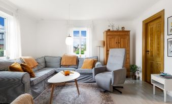 Single-family house, built in 1926. 250 m from the sea. Private: property 1'995 m2, well-kept garden. Barbecue, fireplace. In the house: washing machine, tumble dryer. Parking at the house. Grocery 500 m. Golf course 9 km. The owner does not accept any youth groups. "Nanja" - 250m from the sea", 2-room house 127 m2. Object suitable for 4 adults + 1 child. Living room with TV. 1 room with 1 double bed. 1 room with 1 double bed. Kitchen (oven, dishwasher, 4 ceramic glass hob hotplates, microwave, freezer). 2 showers/WC. Facilities: baby cot. Internet (WiFi). Please note: non-smokers only. 825