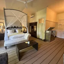 Это действительно роскошный отель с вековой историей, построенный британскими колонистами. Он повсюду демонстрирует аристократический темперамент, сдержанную атмосферу, продуманное и тщательное обслуживание. Черный брат проводит вас в специальную гостиную для регистрации, и присылает тебе влажные салфетки и лимонад. Задний сад отеля выходит на мост-водопад.Самое чудесное — наслаждаться туманом, поднимающимся от водопада, попивая английский послеобеденный чай.