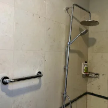 Номер был просторным, и в нем разрешалось готовить, но вода в душе уходила очень медленно, а фен пришлось покупать отдельно в отеле.