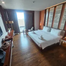 По прибытии нас встретил дружелюбный персонал. Регистрация прошла быстро, и пока мы ждали, нам предложили холодный апельсиновый сок. В качестве бонуса нам также предоставили номер более высокой категории! Номер был безупречно чистым, с удобными кроватями, роскошными полотенцами, а в холодильнике были прохладительные напитки, вода и пиво, которые оплачиваются при выезде (если вы ими пользуетесь). Ужин включал в себя комплексное меню с блюдами западной и азиатской кухни. Он был очень вкусным, порции щедрые, и вы могли поужинать в ресторане или заказать еду в номер. На следующее утро у нас был ранний вылет, и нам упаковали завтрак-бокс. Это было действительно приятное пребывание, и мы бы хотели провести там больше одной ночи. Для тех, кому нужно посетить посольство Таиланда, расположение идеальное.