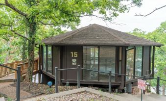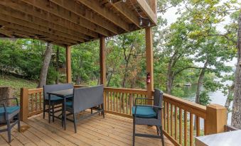This is a lake-front home that is managed, cleaned, and maintained by its owners. We are constantly upgrading this house and keeping it fresh. New basement bathroom installed January, 2025. New kitchen cabinets, master and main bathroom, and interior paint Spring, 2023. New window and sliding door (Nov, 2021) that now gives a walk-out option from the basement bedroom onto a new deck. New Flooring, new appliances, new fixtures, new furniture, new windows and window coverings (Nov, 2020). On the water, octagon-shaped Treetop Village Cottage conveniently located on Horseshoe Bend. Unique architecture with rough hewn interior finishes and exposed beams and 180 degree views of the 13 mile marker cove. Close to Lodge of Four Seasons, night life, shopping, winery, marinas, and restaurants. The Robert Trent Jones golf course, The Cove, is steps away. Sleeps 8 with the sleeper sofa in the living room. Outdoor decks provide serenity under giant oaks with a great view of the main channel. The cottage is steps away from 1 of 3 outdoor pools, boat slips, and fishing dock. Other Treetop Village amenities include free access to the new Village of Four Seasons Aquatic Center with indoor and outdoor pools (1/4 mile away), 2 outdoor tennis courts, recreation dock, and a basketball/volleyball/pickleball court. New HVAC installed March, 2019. New front door deck built in April, 2019. New downstairs deck built in March, 2020. Attending a conference or event at The Lodge of Four Seasons? This is a great alternative to staying in the hotel; very quiet and only minutes away.