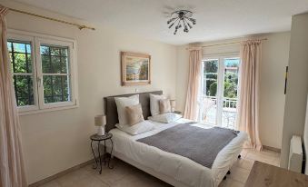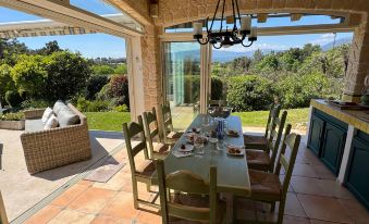 Welcome to Villa Bougainville - Nestled within a secure and private estate with 24/7 security, in the sun-drenched hills 6km from the charming Provençal village of Valbonne, our holiday villa offers a tranquil escape where the scent of lavender mingles with the gentle Mediterranean breeze. Imagine waking to the chorus of cicadas, stepping onto a private terrace with breathtaking views, and spending leisurely afternoons by your own sparkling pool. For those who enjoy outdoor cooking and dining, our villa is equipped with both a BBQ and a plancha, perfect for grilling delicious meals under the Mediterranean sun. For those with a competitive spirit, our property boasts access to three tennis courts, available to our guests completely free of charge, and for a taste of classic French leisure, enjoy our private petanque court for friendly games. Inside, enjoy modern comforts including a 65-inch television for your entertainment and Wi-Fi throughout to keep you connected.